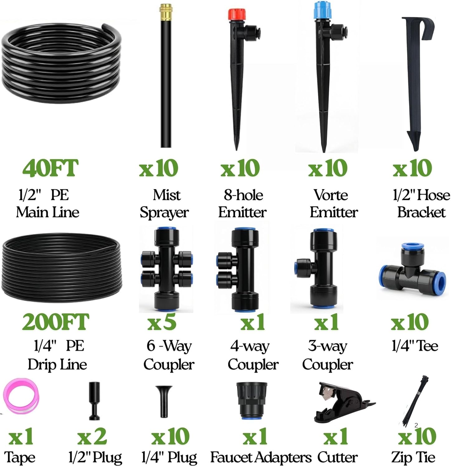 Transform your garden into a lush paradise with our 240FT Drip Irrigation System. This comprehensive kit features 1/2″ Quick Connect PE Tubing, designed for easy installation and efficient watering. Perfect for outdoor raised beds, flower gardens, and greenhouses, this automatic water sprinkler system ensures your plants receive the right amount of moisture without the hassle of manual watering.