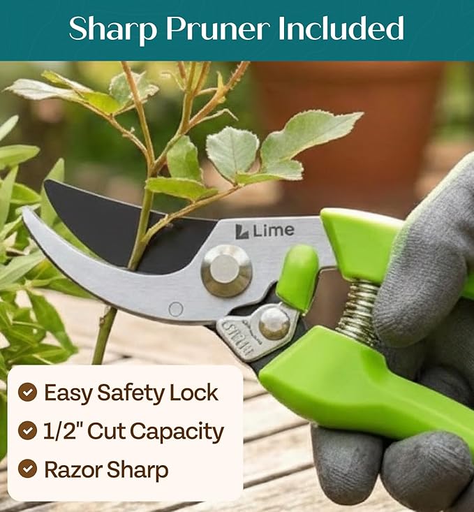 - PREMIUM GARDEN TOOLS – Our gardening tool set comes with a Spray Bottle, Shovel, Crack Weeder, Hand Rake, Weeder, Pruner, 15 Plant tags, a pair of Hand Gloves, and a Heavy Duty Garden Bag to keep all your tools packed away provides everything you need to maintain a beautiful and healthy garden.